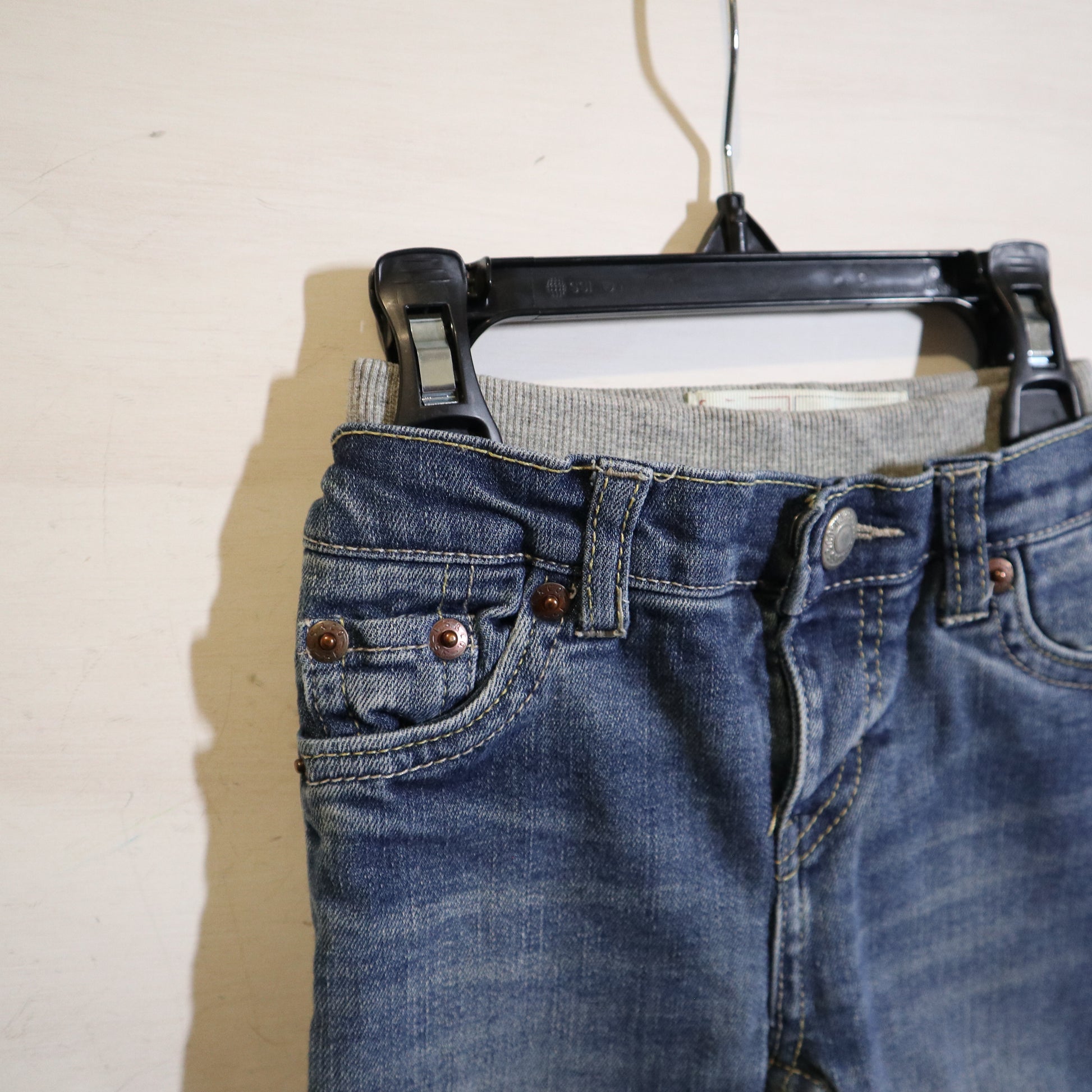 Details - Jeans with grey elastic waist