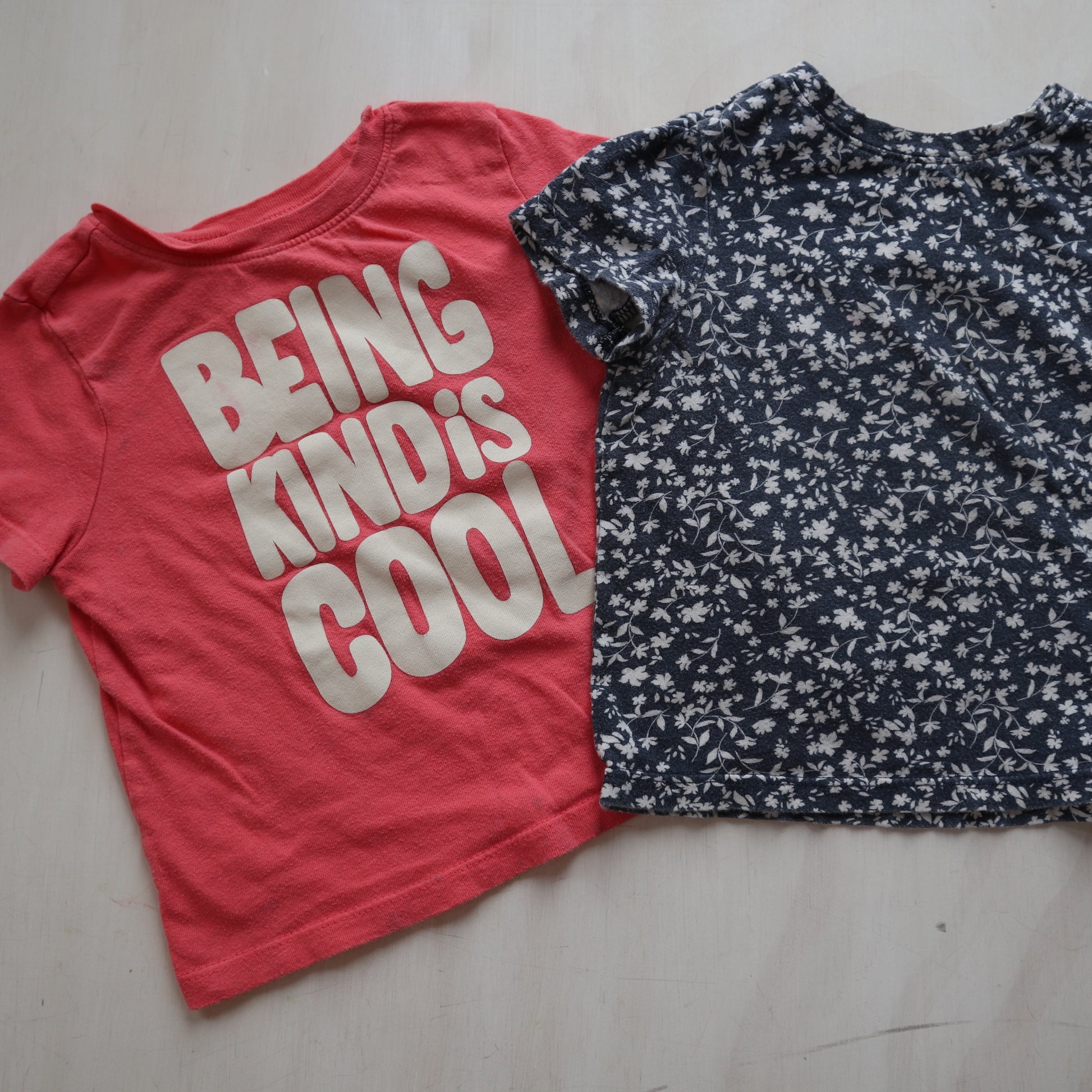 Details - Blue floral + pink t-shirt