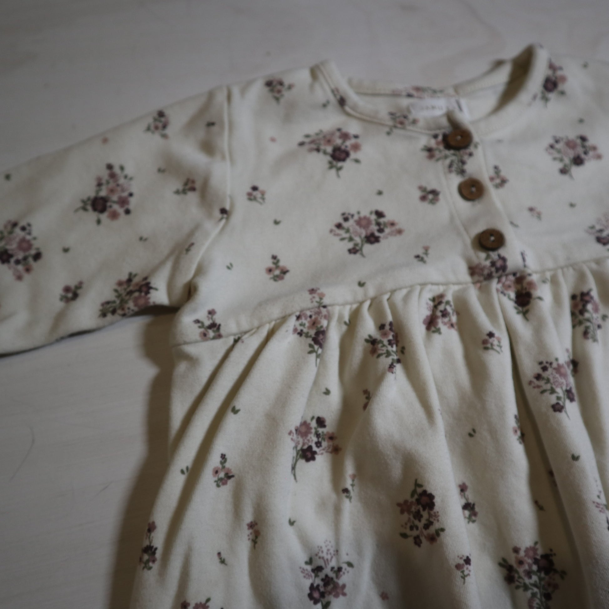 Details - White with purple floral print, long sleeve