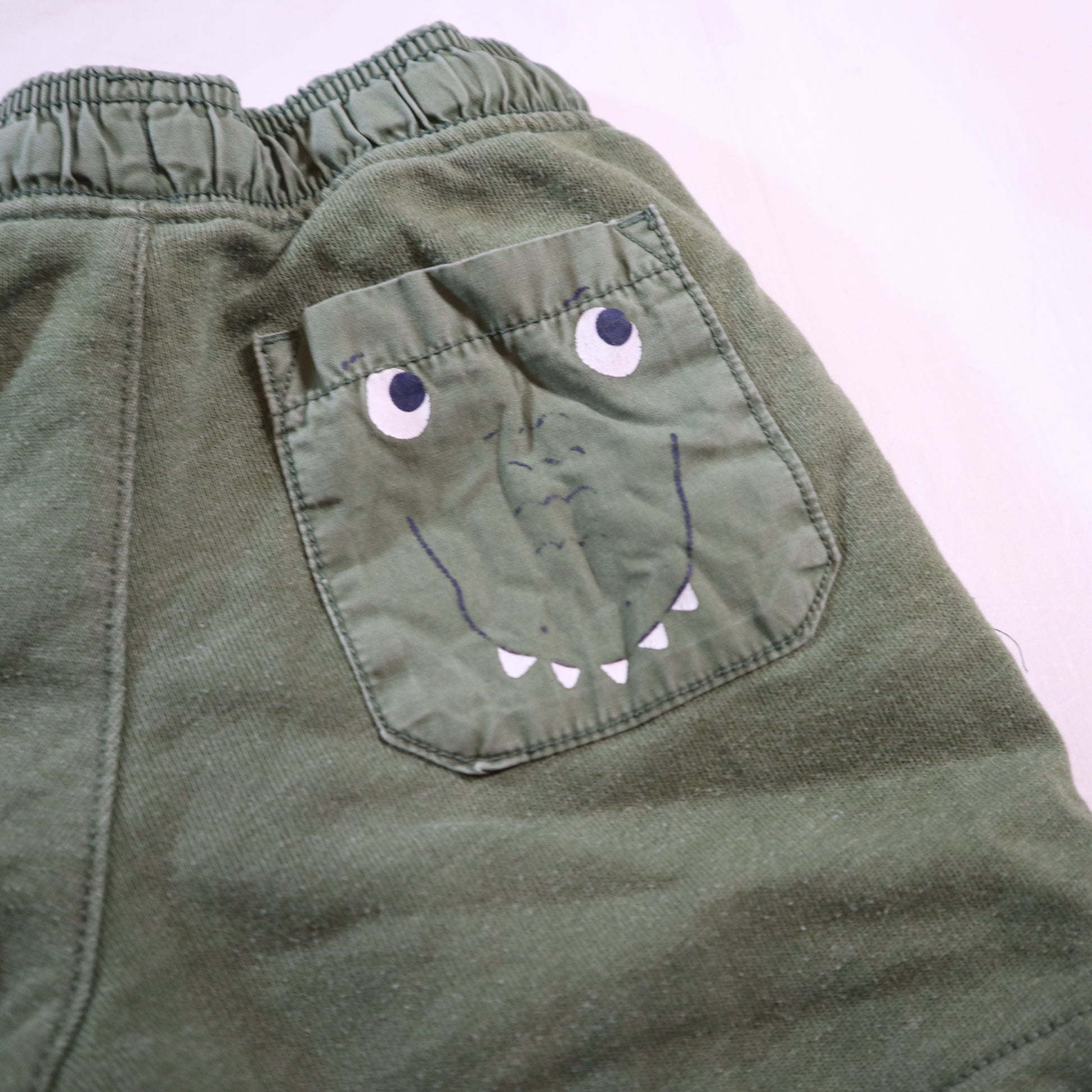 Details - Green shorts, alligator pocket, working drawstring