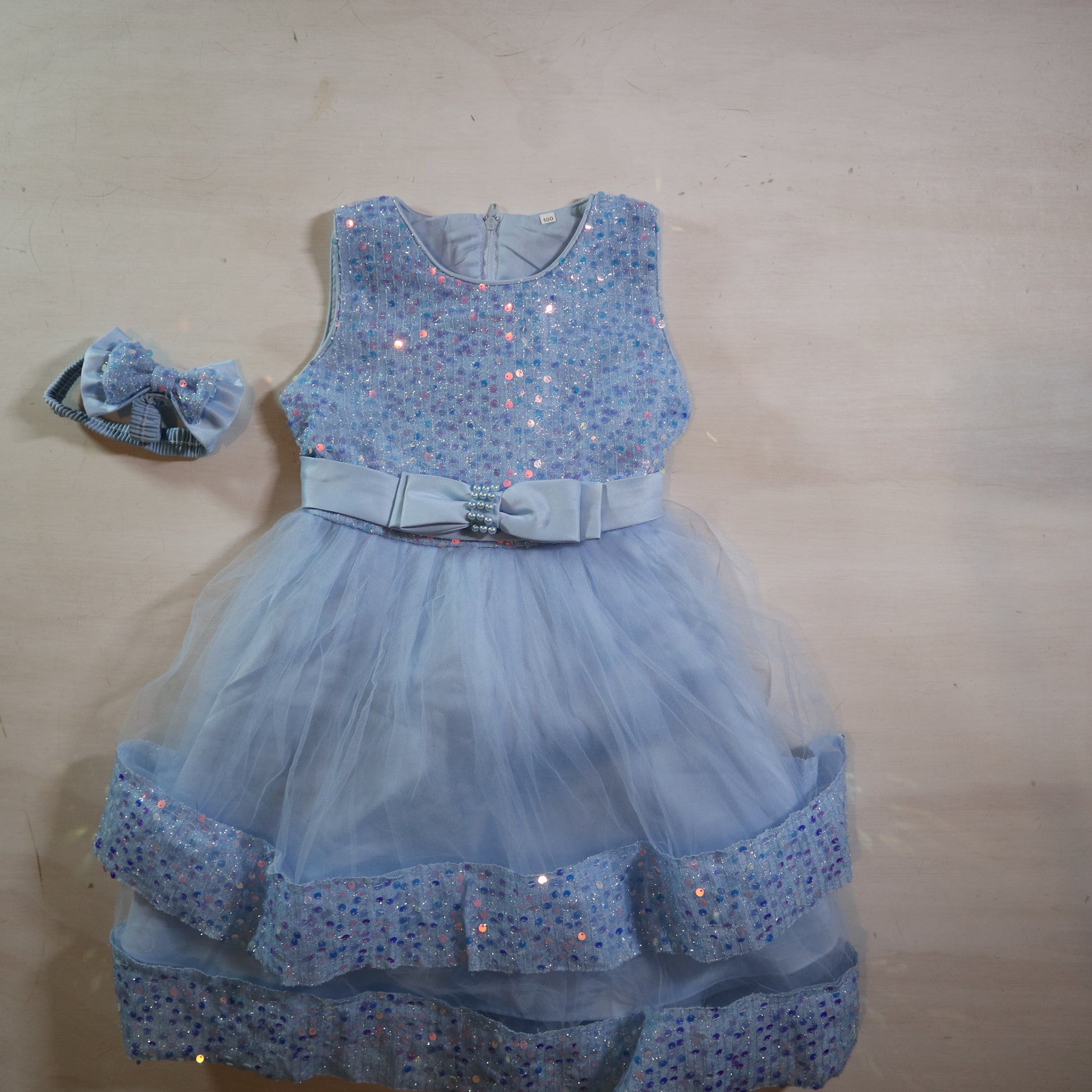 Details - Blue with sequins, matching headband