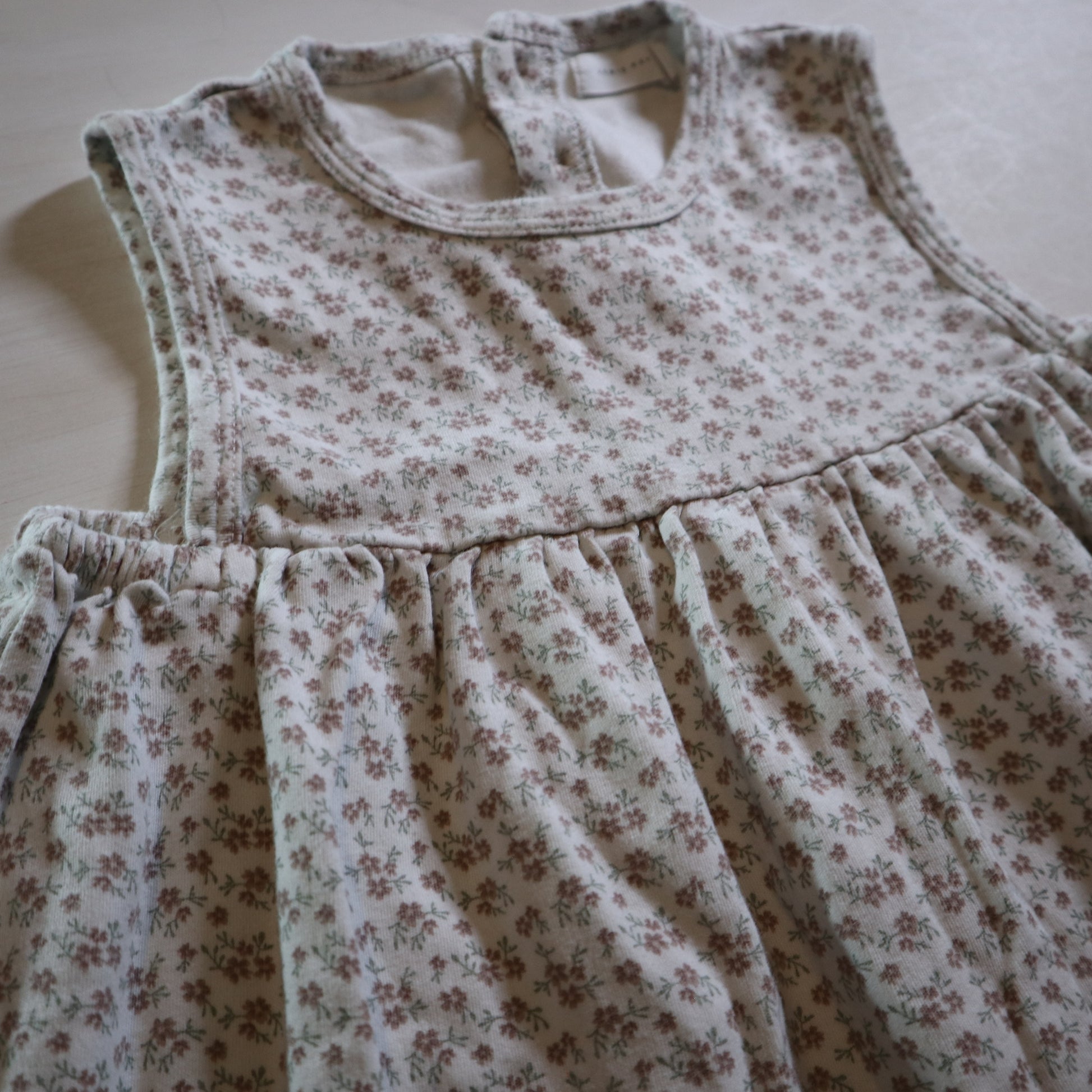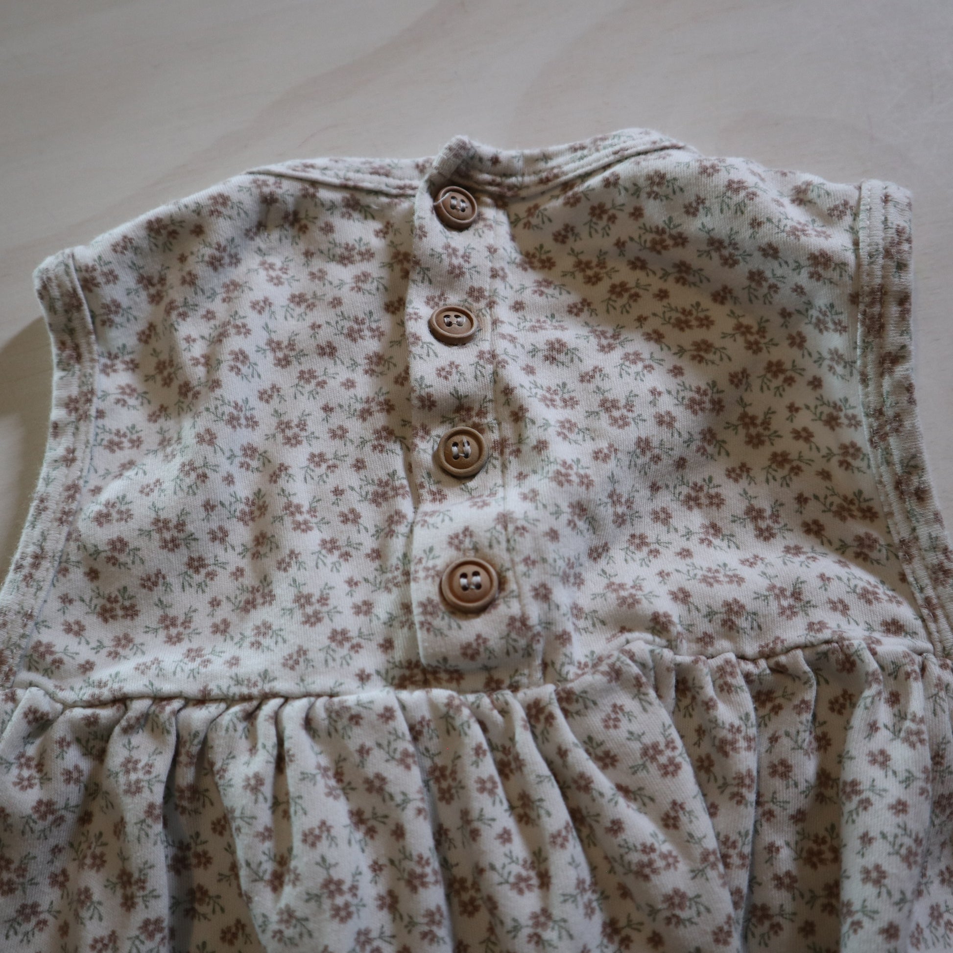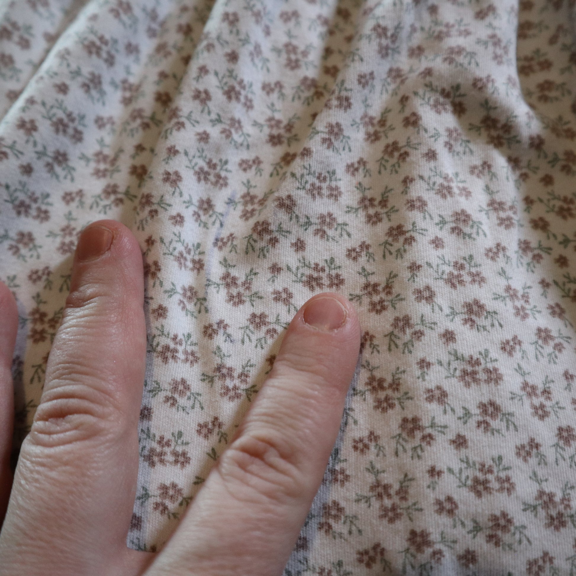 Details - White with petite pink flower pattern