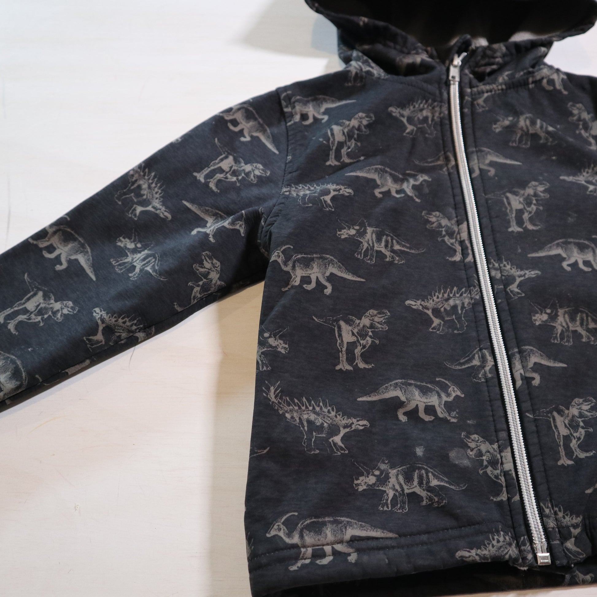 Details - Black with dinosaurs, softshell, fleece lined
