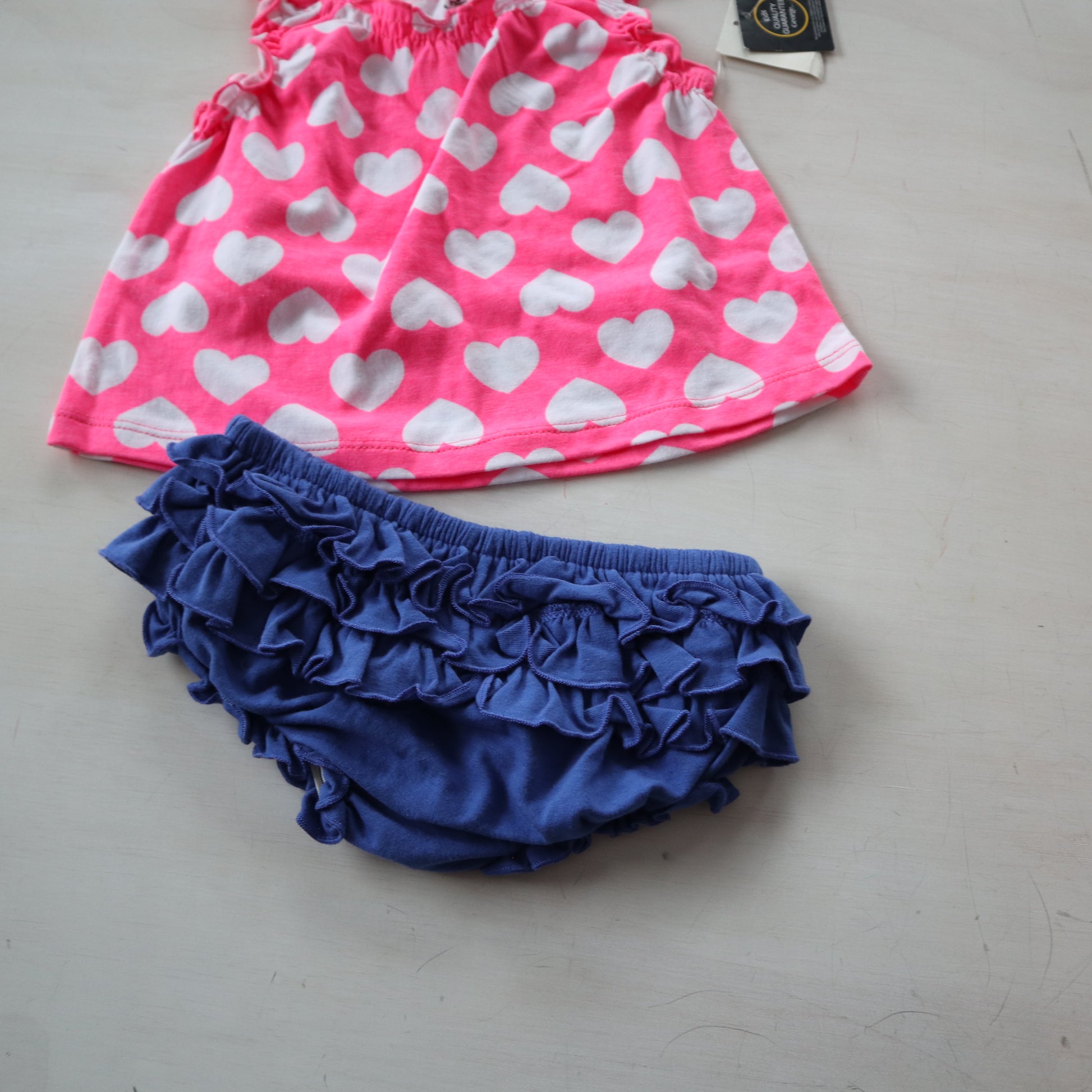 Details - Heart top, navy blue bottoms