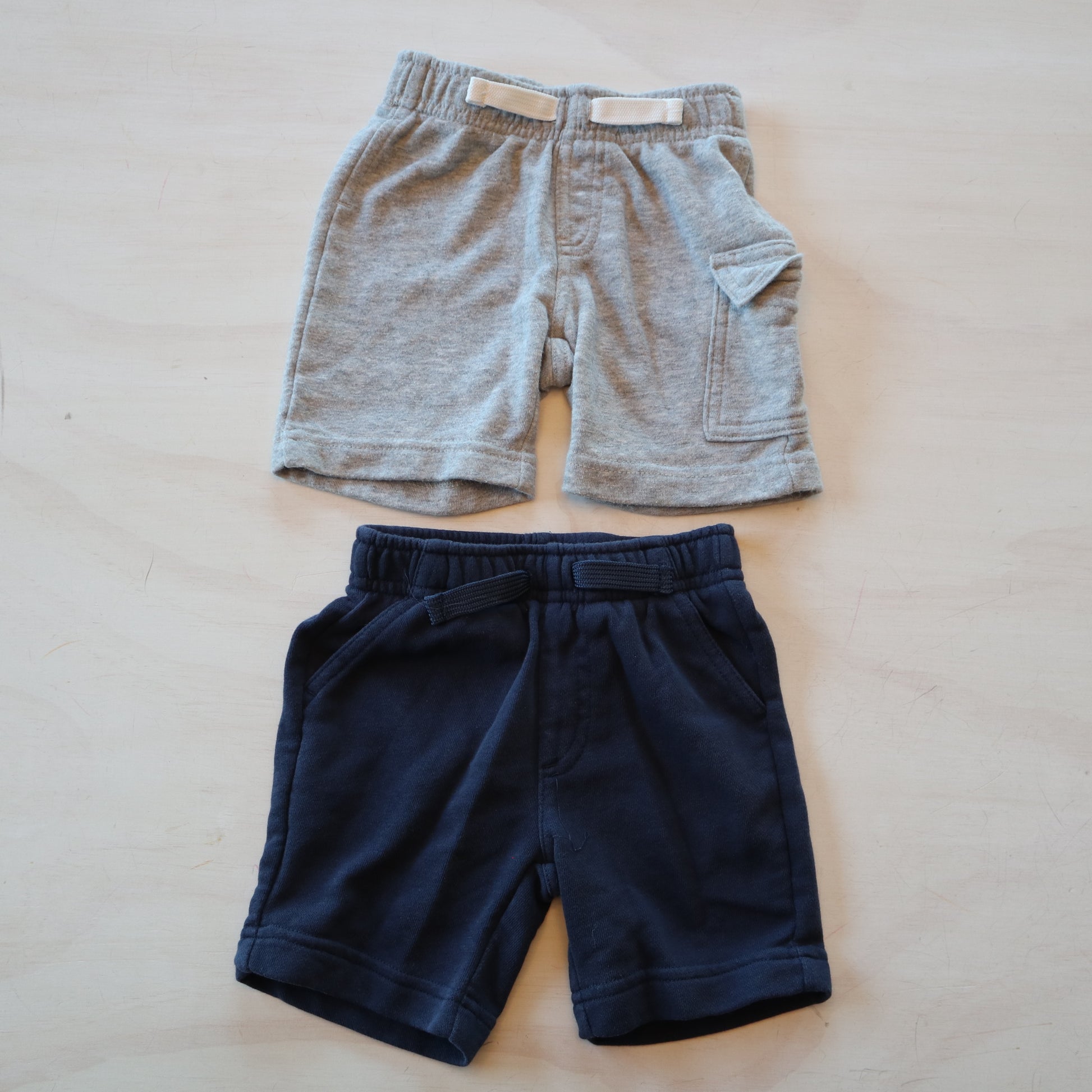 Details - Blue & grey, sweatpant material, faux drawstring
