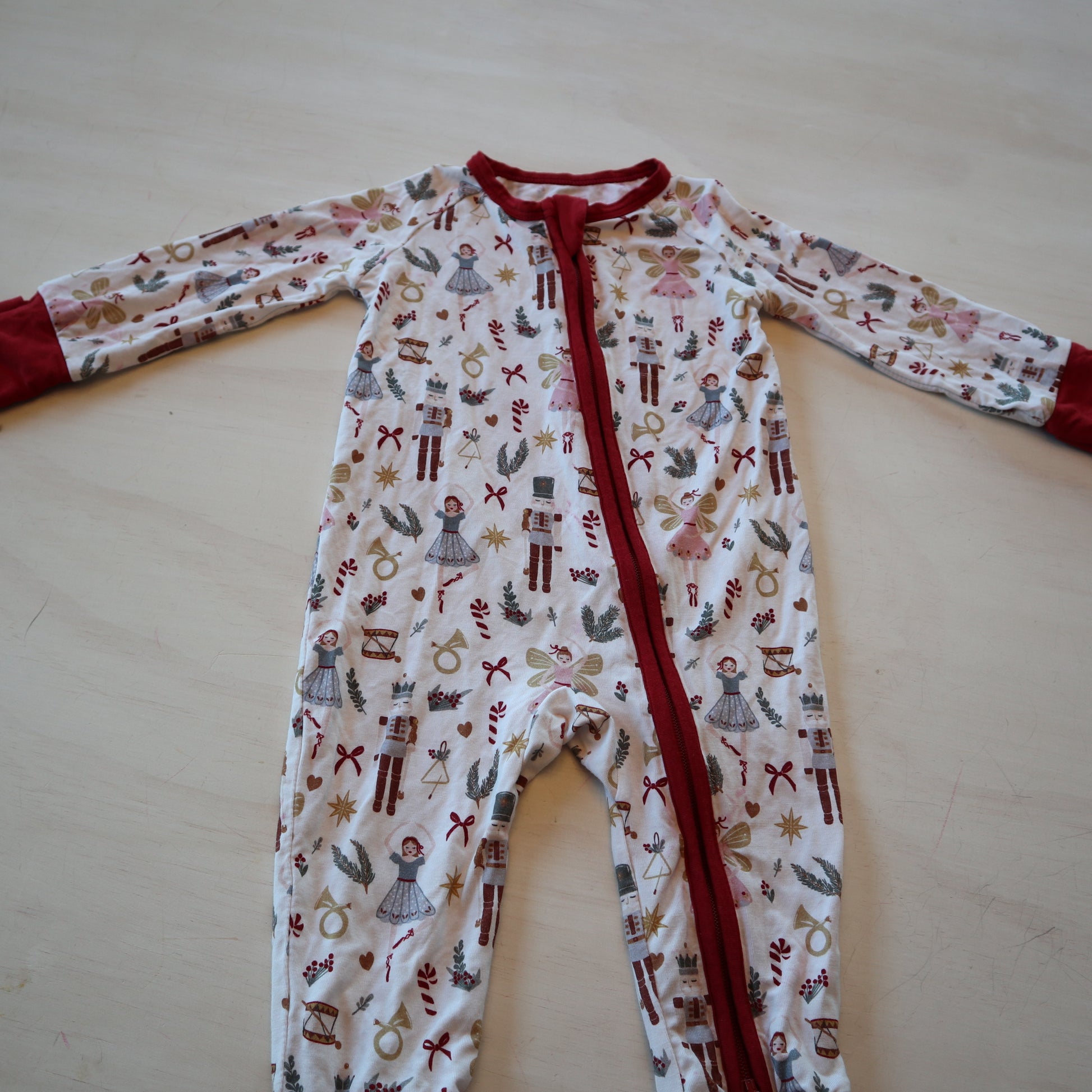 Details - Bamboo, fold over hands & feet, Nutcracker print
