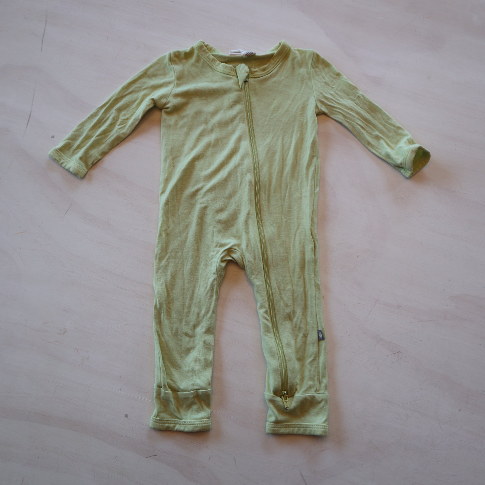 Details - Footless zippie, bamboo, green/yellow