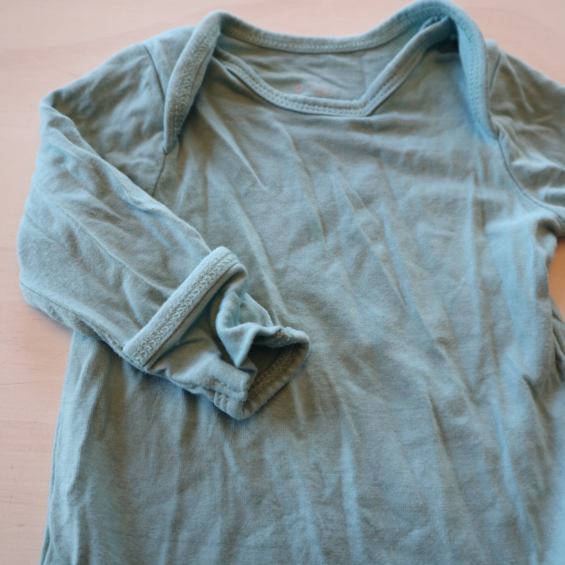 Details - Teal onesie, fold over hands